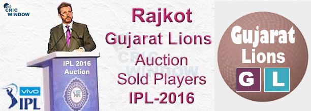 Finds here with IPL 9 Rajkot Gujarat Lions Auction Sold players Detailed List with Sold Price, Country and Playing Role :
