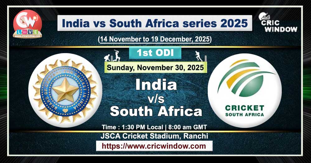 1st ODI match of three odi match series will be played between India vs South Africa at JSCA Cricket Stadium, Ranchi on Sunday, November 30, 2025.